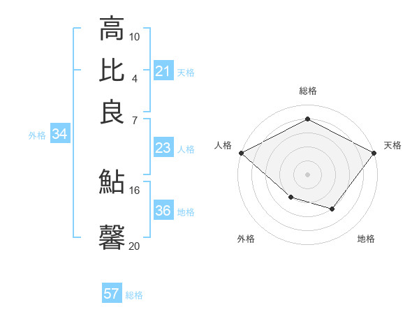 高比良 鮎馨さんの総格は57画の4点!
