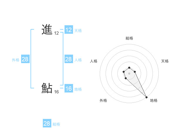 進 鮎さんの地格は16画の5点!