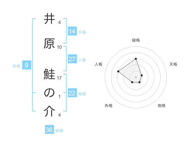井原 鮭の介さんを姓名の画数から五運を鑑定