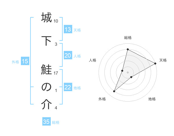 城下 鮭の介さんを姓名の画数から五運を鑑定