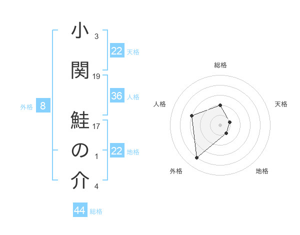 小関 鮭の介さんの地格は22画の1点
