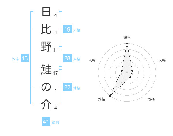 日比野 鮭の介さんを姓名の画数から五運を鑑定