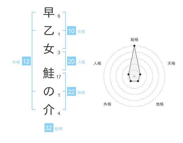 早乙女 鮭の介さんを姓名の画数から五運を鑑定
