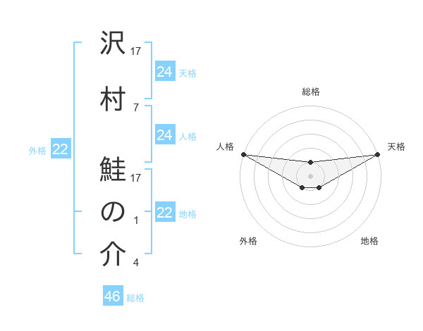 沢村 鮭の介さんを姓名の画数から五運を鑑定