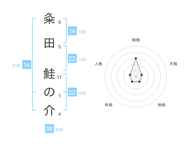 粂田 鮭の介さんを姓名の画数から五運を鑑定