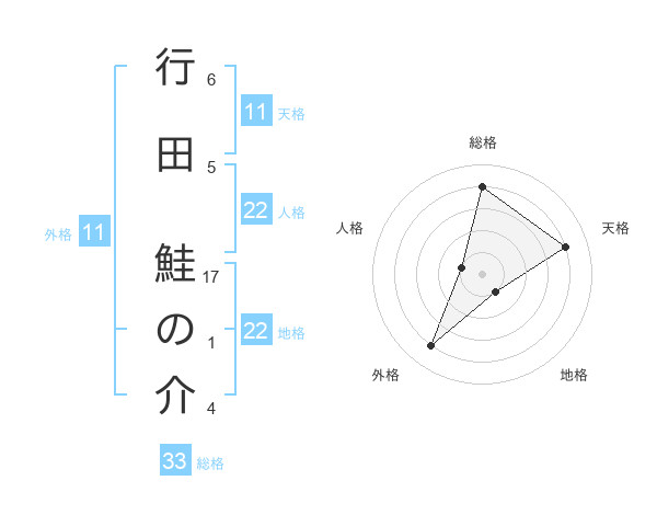 行田 鮭の介さんの総格は33画の4点!
