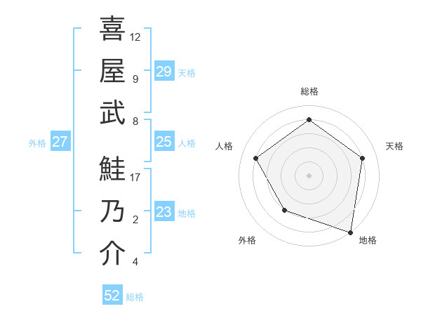 喜屋武 鮭乃介さんの総格は52画の4点!