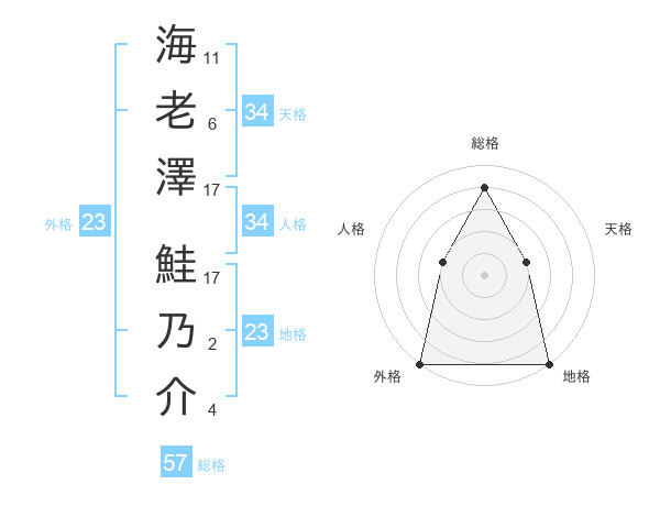 海老澤 鮭乃介さんの総格は57画の4点!