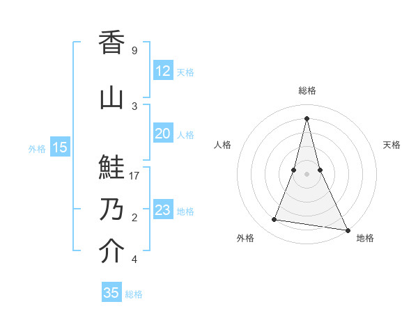 香山 鮭乃介さんを姓名の画数から五運を鑑定