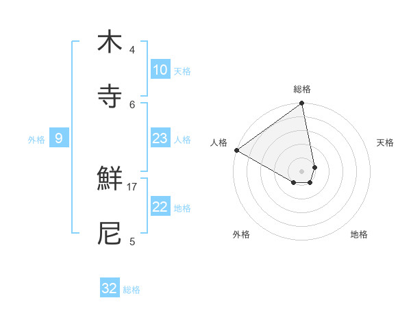 木寺 鮮尼さんを姓名の画数から五運を鑑定