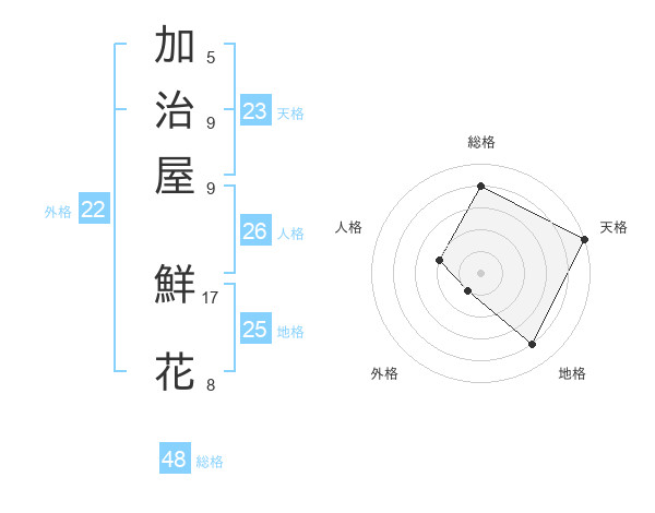 加治屋 鮮花さんを姓名の画数から五運を鑑定