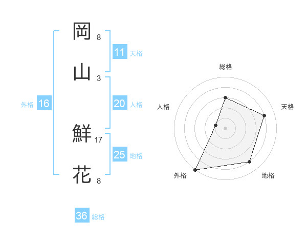 岡山 鮮花さんの天格は11画の4点!