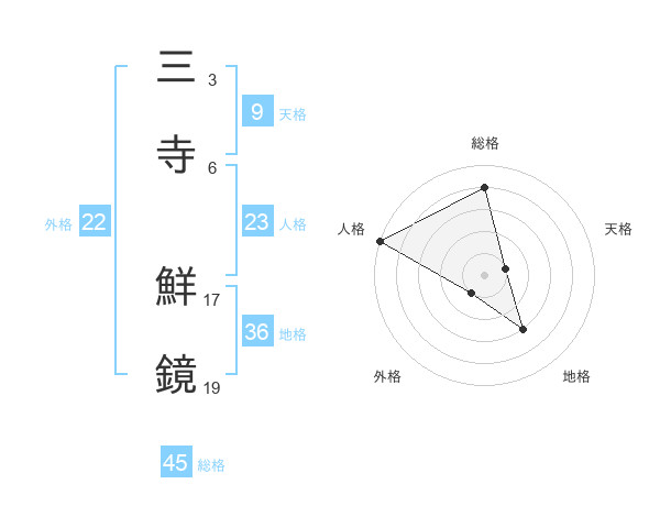 三寺 鮮鏡さんの総格は45画の4点!