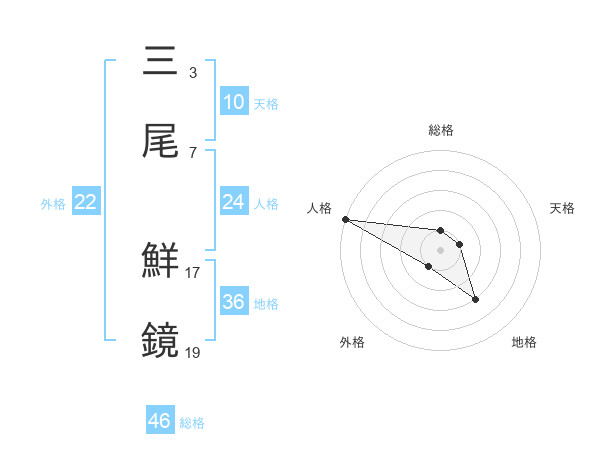 三尾 鮮鏡さんを姓名の画数から五運を鑑定