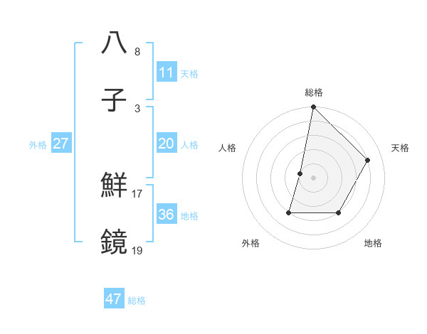 八子 鮮鏡さんの総格は47画の5点!