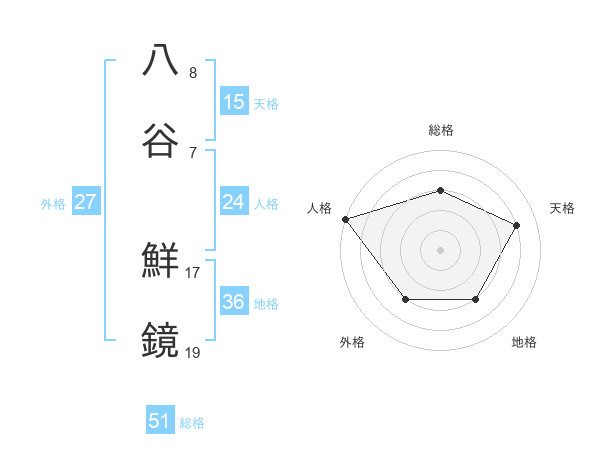 八谷 鮮鏡さんを姓名の画数から五運を鑑定