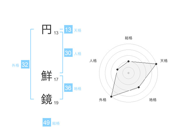 円 鮮鏡さんを姓名の画数から五運を鑑定