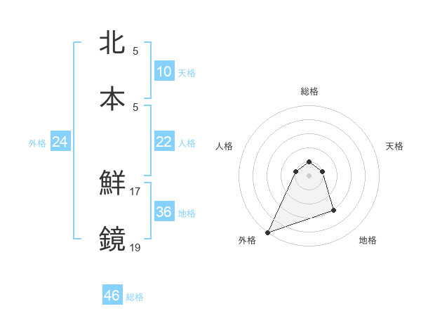 北本 鮮鏡さんを姓名の画数から五運を鑑定
