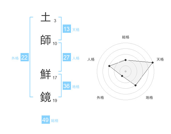 土師 鮮鏡さんを姓名の画数から五運を鑑定