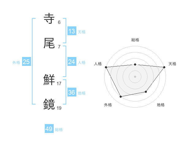 寺尾 鮮鏡さんを姓名の画数から五運を鑑定