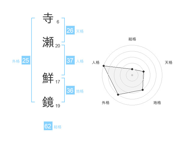 寺瀬 鮮鏡さんの人格は37画の5点!
