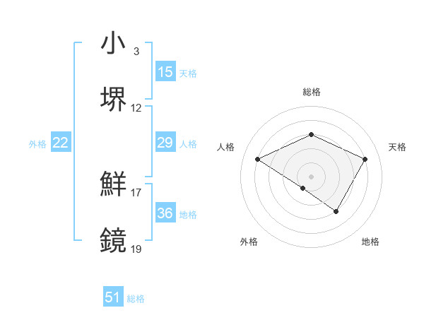 小堺 鮮鏡さんの総格は51画の3点!