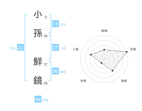 小孫 鮮鏡さんを姓名の画数から五運を鑑定