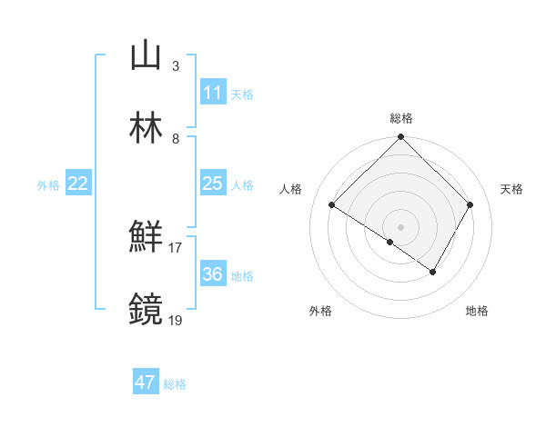 山林 鮮鏡さんの総格は47画の5点!