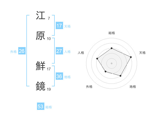 江原 鮮鏡さんを姓名の画数から五運を鑑定