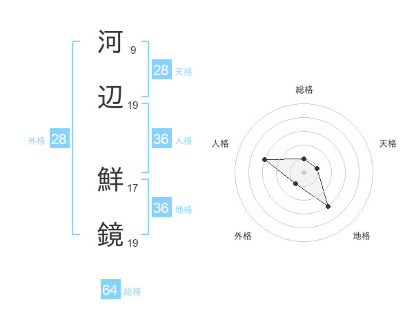河辺 鮮鏡さんを姓名の画数から五運を鑑定