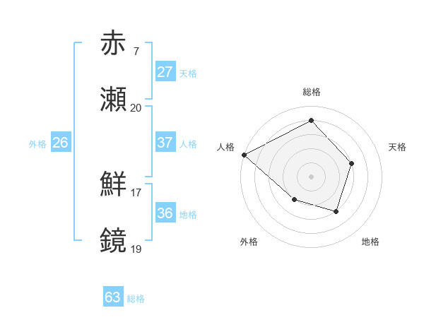 赤瀬 鮮鏡さんの総格は63画の4点!