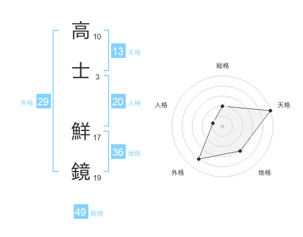 高士 鮮鏡さんを姓名の画数から五運を鑑定