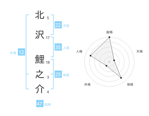 北沢 鯉之介さんを姓名の画数から五運を鑑定