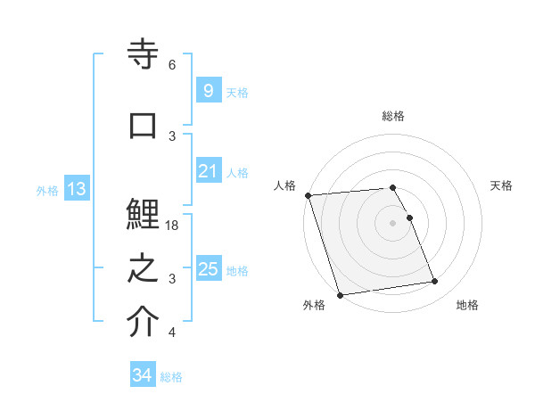 寺口 鯉之介さんの外格は13画の5点!