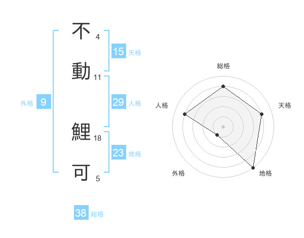 不動 鯉可さんの総格は38画の4点!