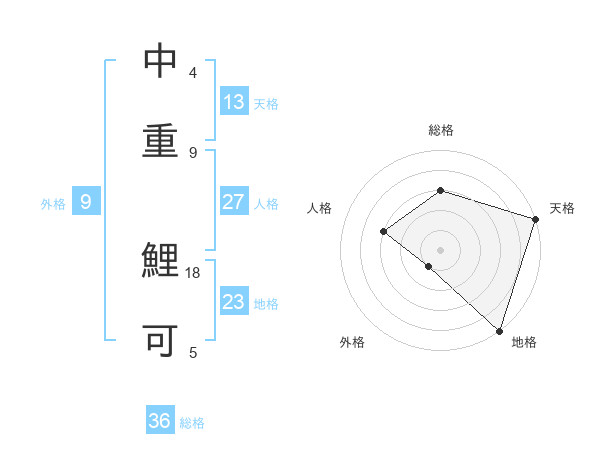 中重 鯉可さんを姓名の画数から五運を鑑定