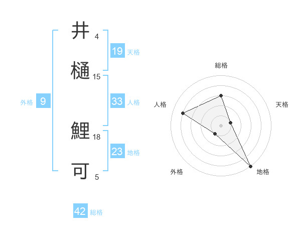 井樋 鯉可さんを姓名の画数から五運を鑑定