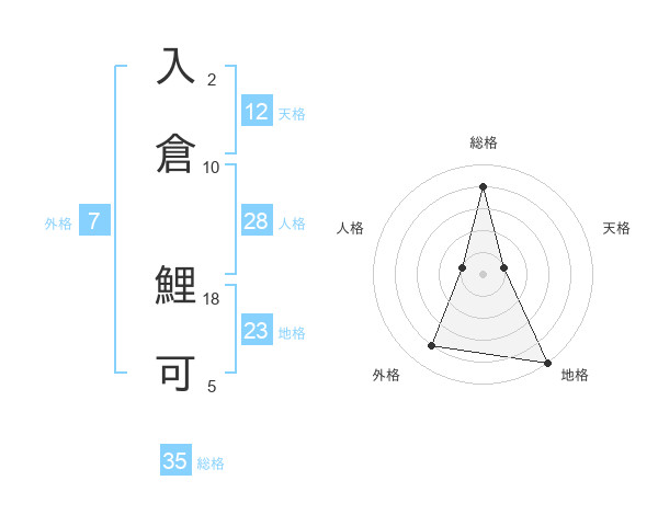 入倉 鯉可さんを姓名の画数から五運を鑑定