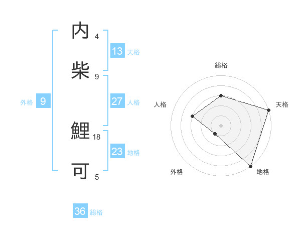 内柴 鯉可さんの総格は36画の3点!