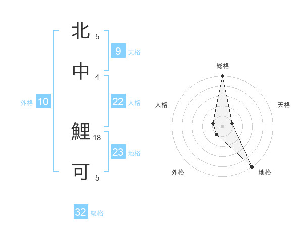 北中 鯉可さんの総格は32画の5点!
