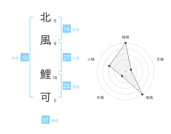 北風 鯉可さんを姓名の画数から五運を鑑定