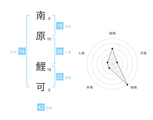 南原 鯉可さんの天格は19画の1点!