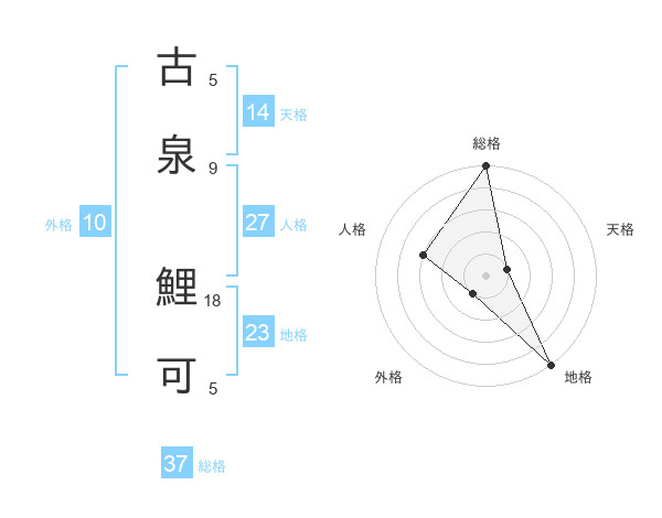 古泉 鯉可さんの総格は37画の5点!