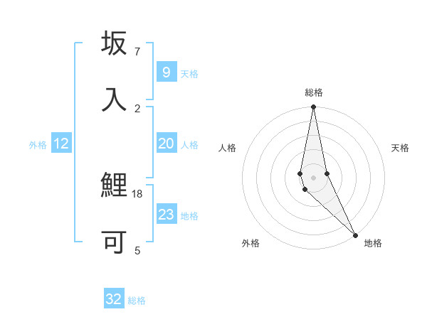 坂入 鯉可さんを姓名の画数から五運を鑑定