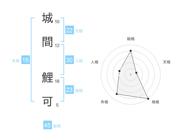 城間 鯉可さんの総格は45画の4点!