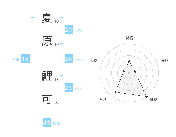 夏原 鯉可さんの総格は43画の2点!