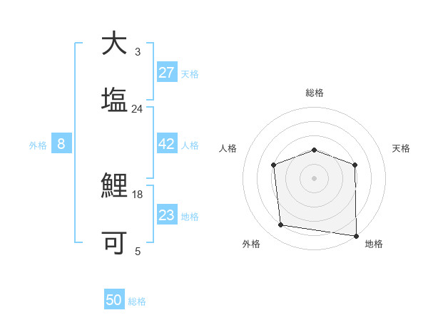 大塩 鯉可さんを姓名の画数から五運を鑑定