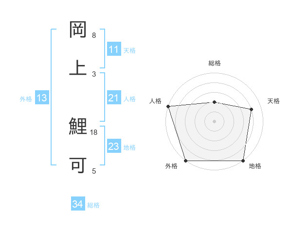 岡上 鯉可さんを姓名の画数から五運を鑑定