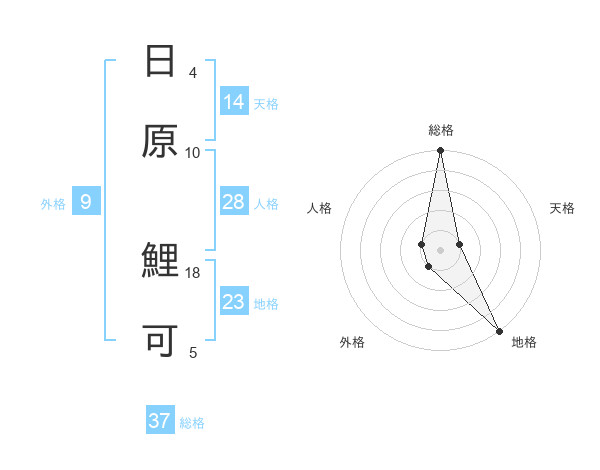 日原 鯉可さんの総格は37画の5点!