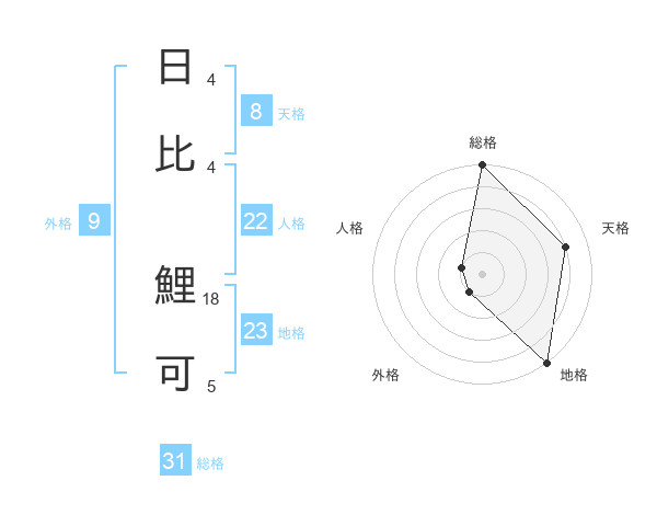 日比 鯉可さんを姓名の画数から五運を鑑定